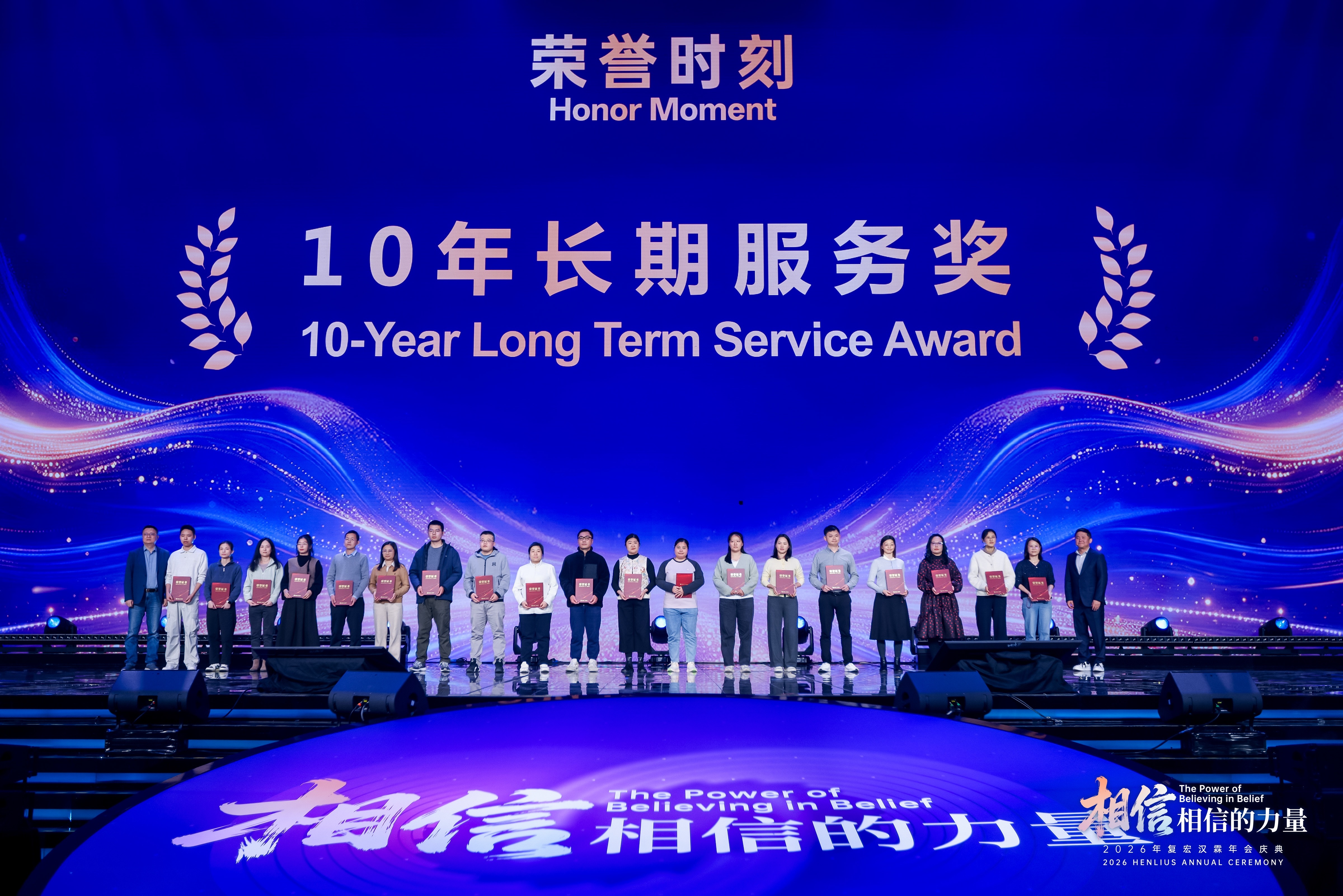 在宏大戰略與願景的指引下,年會慶典迎來了屬於奮鬥者的「榮譽時刻」。公司特別向與企業共同成長、長期貢獻的員工予以表彰,為服務滿五年和十年的員工頒發「長期服務獎」,致敬他們在公司發展關鍵階段的堅守與付出,這既是對奮鬥歲月的致敬,更是對長期主義的禮讚。與此同時,公司還頒發「年度重大貢獻項目獎」,表彰在關鍵業務領域實現突破、為公司發展作出突出貢獻的項目團隊,激勵全體員工繼續弘揚創新進取、協同奮進的精神,在新的發展階段持續創造價值,推動企業邁向更高質量的發展。