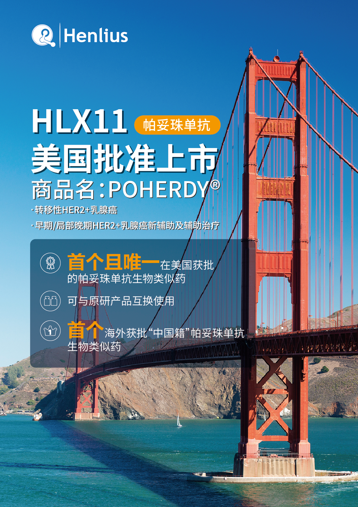中国上海 & 美国新泽西州泽西市,2025年11月17日 —— 复宏汉霖(2696.HK)与Organon(纽交所代码:OGN)今日共同宣布,帕妥珠单抗注射液(420 mg/14 mL)POHERDY®(pertuzumab-dpzb)生物制品许可申请(BLA)获美国食品药品监督管理局(FDA)批准,并可与原研产品PERJETA(pertuzumab)互换使用,成为美国首款且唯一的PERJETA生物类似药,覆盖其在美国已获批的所有适应症1, 2。这一获批标志着在提升特定HER2阳性乳腺癌患者获得兼具品质与潜在更可负担治疗的可及性方面迈出了具有里程碑意义的一步。